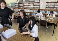 《講演会前、モデルの生徒4人》