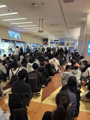 那覇空港に全員到着しました!これから羽田空港に向かいます!