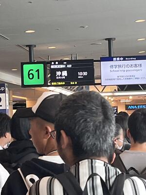 羽田空港に全員無事に到着し、定刻10時30分に沖縄に向けて出発します!