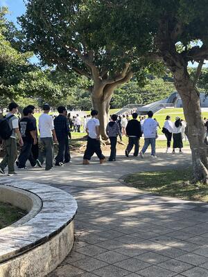 天気にも恵まれた中、平和祈念公園にて平和学習を行なっています。