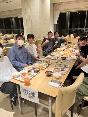 1日目の日程を無事に終え、宿泊先にて夕食です!クラスメイトと明日からの充実した体験のパワーを蓄えましょう!