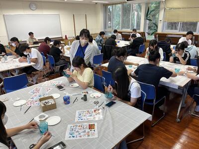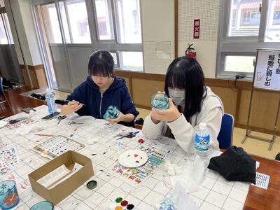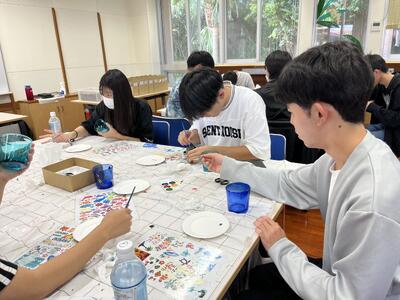沖縄の伝統工芸である琉球ガラスの絵付けなどを体験しています!