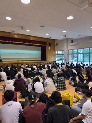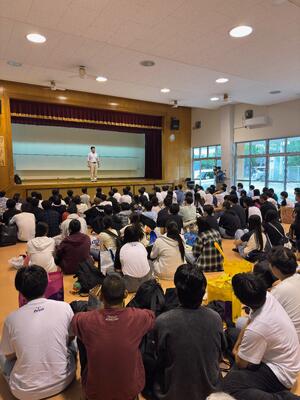 致知出版にご勤務経験のある橋本祐太朗氏より、人との『縁』や幸せになること、働く人としての心持ちについて、深く教えていただきました。そして、「大人と子どもの違いは『感謝』の気持ちを持っていること」と、おっしゃっていました。対価を受け取るだけでなく、働くことで学びを得られること、その感謝の気持ちを持ってこそ『大人』であるということを伺いながら、思い返したことがありました。前日のレクリエーションで実行委員の皆さんが、準備に携わってくれた人や開催してくれた先生方、協力してくれた生徒たちに向けて、また、みんなと一緒に楽しめたことに何度も感謝の気持ちを伝えていたことを。心の成長に立ち会えた瞬間でしたし、本日の講演から皆さんが『大人』として認められたように感じ、誇りに思いました。どうか、これからも自分自身を奮い立たせて、講演で学んだ『人間学』を勉強し続け、立派な『大人』となって自分の人生を幸せに生きてください。