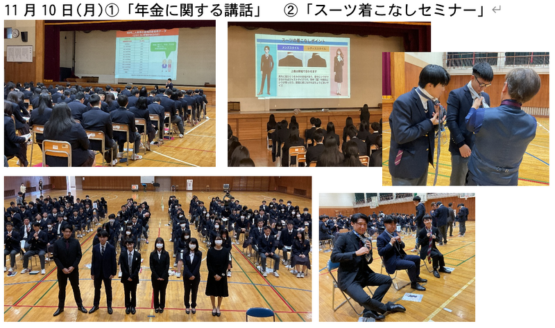 11月14日(月)AOKIホールディングスのコーディネーターの方に、スーツやアイテムの選び方やTPOに合わせた着こなし、心構えを教えていただきました。進路はそれぞれですが、来春から新社会人となる3年生は準備が必要です。生徒一人ひとりに自覚が芽生えました!とても熱心な受講の様子です。
