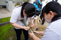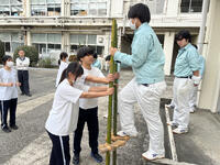 できあがった後はみんなで竹馬乗りにチャレンジ。ほとんどの生徒が竹馬は初めてで、恐る恐るチャレンジしていました。