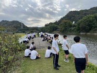 学校の周辺に流れる湊川沿いを自然を感じながら走ります。