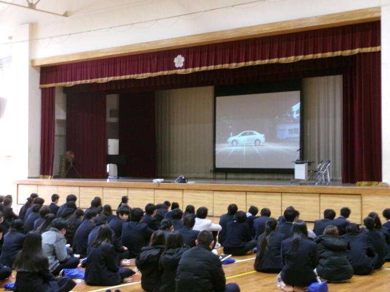 12月12日(金) 今日は旭警察署員の方々を講師に招き道徳講演会を実施しました。冬の全国交通安全運動の期間ということもあり、命の大切さや事故から自身の命を守る方法について講演していただきました。