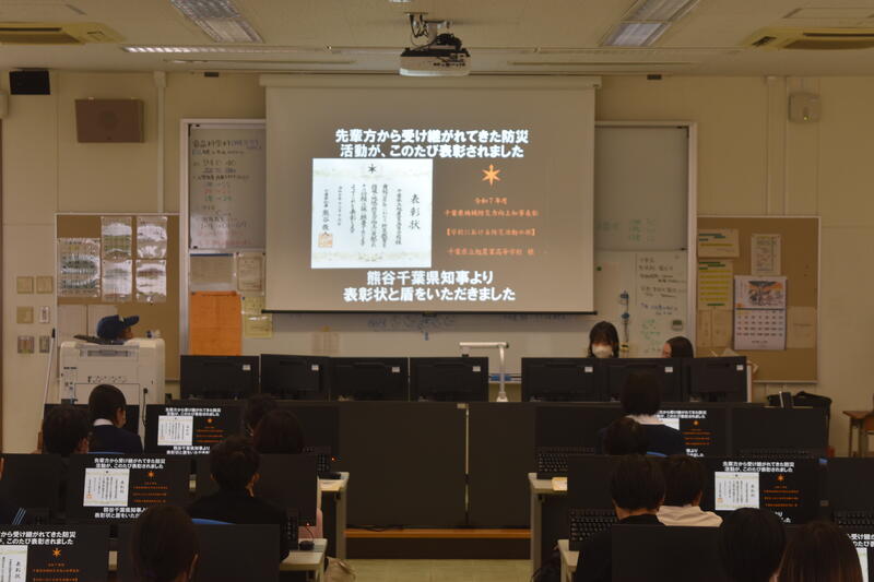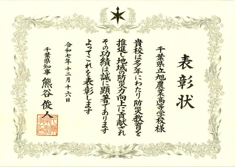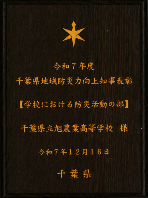 令和7年12月16日に『令和7年度 千葉県地域防災力向上知事表彰「学校における防災活動の部」』を受賞しました。