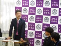 4月11日(金)、館山市教育委員会教育長 石井浩己 様(安房高校前校長)をお招きして、1年生特別進学クラス生徒を対象にした特別講義を実施しました。石井先生は安房高ルネッサンスプロジェクトをスタートさせたときの校長先生で、本プロジェクトと特別進学クラスの意義を最も理解し、とても期待をしてくれています。高い志を持って特別進学クラスを希望した生徒にとってこれ以上ない講師です。