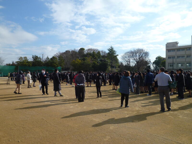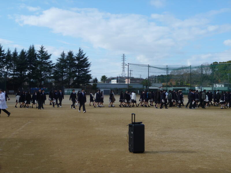 今回は、火災を想定して実施し、生徒達は自らで行動を考えながらグランドへ避難しました。その後、管理保健部長から講評をいただき、最後に本校職員から防災についての講話がありました。
