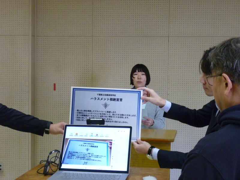 柏陵高校「ハラスメント根絶宣言」についてお話がありました。