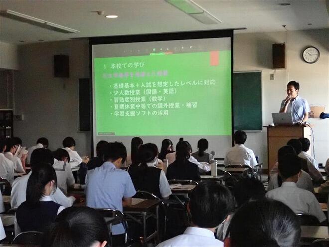 前年度の進路状況、学校行事や文化祭準備の様子、3年次主任からは大学受験に向けた覚悟や模試等の日程、