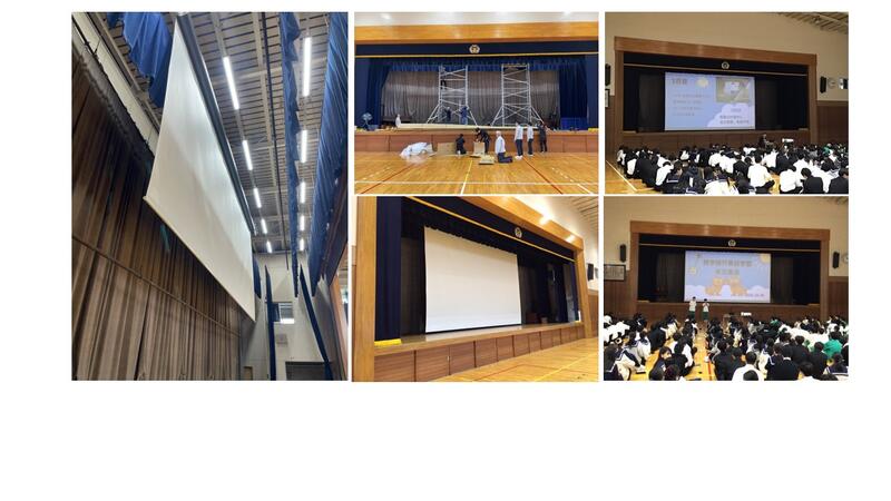 本校は昨年3月からこの制度で体育館への大型スクリーン設置費用を募集し、多くの寄附をいただきました。10月14日に大型電動スクリーンを体育館に設置する工事を行い、併せて高輝度プロジェクタを購入しました。