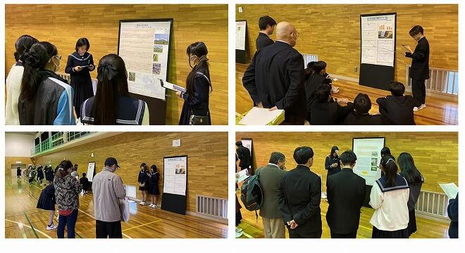 生徒たちは、実習後に物理・化学・生物・地学・数学の担当教員の指導のもと、8月の終わりからポスター作成を始め、当日は計10班が発表を行いました。