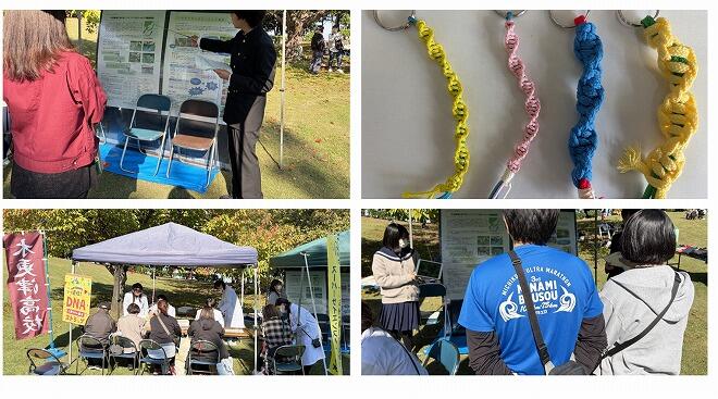 2025年11月3日(月)KISARAZU ORGANIC CITY FESTIBALにて、理数科1年生の生徒が「DNAストラップづくり」ブース出展、「アサギマダラのマーキング調査」の発表を行いました。