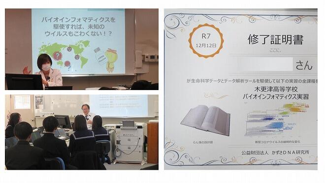 12月12日(金)本校にて、かずさDNA研究所3名の先生に来校して頂き、KISARAZU開拓ラボ「バイオインフォマティクス実習」を実施しました。バイオ=生物、インフォマティクス=情報科学であり、バイオインフォマティクスとは、コンピュータを使って生物学を解こうする学問となります。今回の実習では、インターネットを利用して、世界の研究機関が蓄積してきた生命科学データとデータ解析ツールを駆使しながら、「 配列のよく似たタンパク質を探す。」、「アミノ酸配列を比較して進化を考えよう」、「 ゲノムをダウンロードする。」、「コロナウイルスの変異を追う」といった解析を行いました。