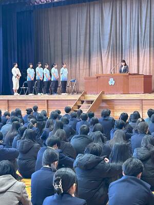 生徒会役員や部活動の生徒たちが、RADIO成田さんと対談形式で、学校の魅力を語っていました。