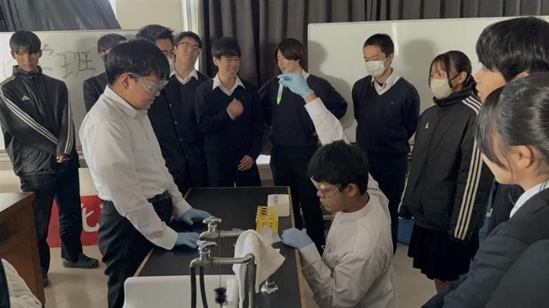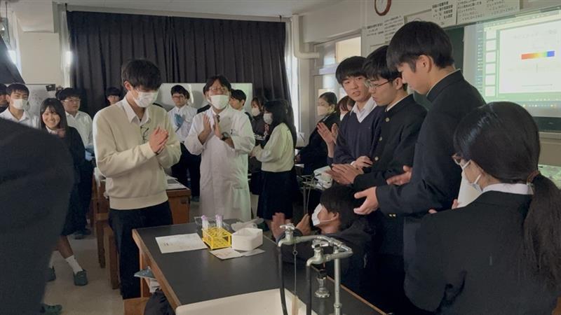 高校では行なわない実験であったため、実際に自分たちの目で確認することができて良い刺激になり、より一層理解を深めることができました。西口先生、ありがとうございました。