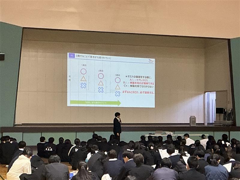 1・2年生を対象に、進路講演会が行われました。これから受験に向けて始動していくために必要な貴重な話を聞くことができました。今後の自分自身の取組に大いに活用しましょう。