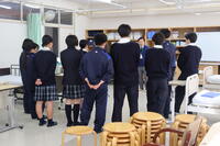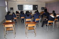 大学・専門学校・就職・公務員の各分野から内定した3年生が後輩たちの教室を回り、志望先を決めた経緯や受験の内容・対策方法などを説明。1・2年生は、先輩の話を真剣に聴いてメモをとっていました。