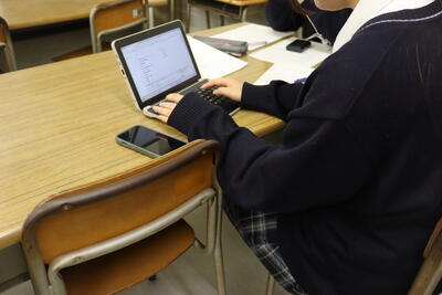 令和8年1月22日(木)7限 医療コースの授業では、1年間のまとめとなる学習が始まりました。今年度の学びを振り返り、医療について考えたこと・今後に生かしたいこと等の中からテーマを絞り、パワーポイントの資料を作成。それを用いて後日発表を行います。